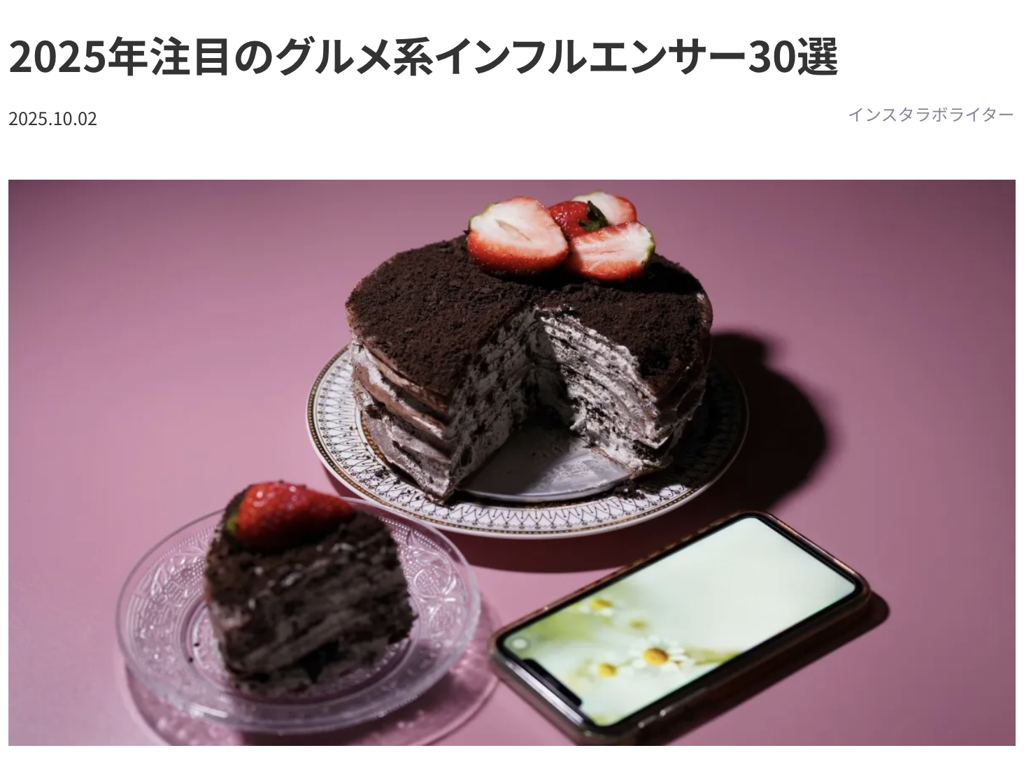この度、ソーシャルワイヤー株式会社(東京証券取引所グロース市場証券コード3929)が運営するSNS・インフルエンサーマーケティングメディア「Insta Lab」の「2025年注目のグルメ系インフルエンサー30選」記事のX部門にて弊社の北海道グルメ・観光NorthSmile(ノーススマイル)/エリちゃんが選出されました。